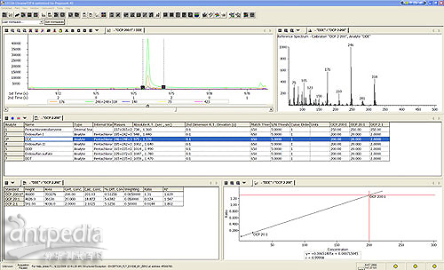 盡管自動(dòng)化在增加數(shù)據(jù)評價(jià)通量方面極其重要,但軟件的布局和設(shè)計(jì)也同樣重要。用戶必須能夠在軟件的一個(gè)區(qū)域內(nèi)無縫流暢地工作,而不需要為完成單個(gè)任務(wù)在面板/窗口之間來回移動(dòng)。將不同信息以一種有助于增加速度、便捷性和靈活性的方式列出也非常重要。當(dāng)查看樣品或標(biāo)樣時(shí)使信息列出的能力、如何列出信息的靈活性以及信息在屏幕上顯示的位置,都會增加操作者的工作效率。圖4的屏幕截圖中,展示了校正多個(gè)分析物的增強(qiáng)功能。從這個(gè)單一的界面中,除了出現(xiàn)的標(biāo)樣外,分析者還能看到校正中分析物的列表,以及標(biāo)樣中每一個(gè)待測物的色譜和質(zhì)譜圖。