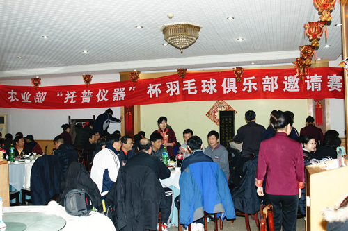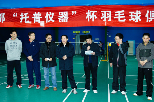 由全國(guó)農(nóng)技推廣中心羽毛球俱樂(lè)部主辦、浙江托普儀器有限公司全程贊助承辦的農(nóng)業(yè)部"托普儀器"杯羽毛球俱樂(lè)部邀請(qǐng)賽,于2011年1月3日上午在 北京陽(yáng)光羽毛球館隆重舉行。當(dāng)天上午9點(diǎn),邀請(qǐng)賽舉行了熱烈簡(jiǎn)短的開(kāi)幕儀式,開(kāi)幕式由農(nóng)技推廣中心夏敬源主任主持,托普儀器公司總經(jīng)理陳渝陽(yáng)先生和參賽俱樂(lè)部代表農(nóng)業(yè)部農(nóng)墾局李偉國(guó)局長(zhǎng)分別做了熱情洋溢的致辭,農(nóng)業(yè)部黨組副書(shū)記、常務(wù)副部長(zhǎng)、農(nóng)業(yè)部機(jī)關(guān)羽毛球俱樂(lè)部名譽(yù)會(huì)長(zhǎng)危朝安出席開(kāi)幕式并為本次比賽開(kāi)球,當(dāng)危部長(zhǎng)擊球,球在空中劃出一道漂亮的弧線,本次比賽正式開(kāi)始。
