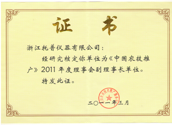 熱烈祝賀托普儀器成為《中國農(nóng)技推廣》2011年度理事會副理事長單位