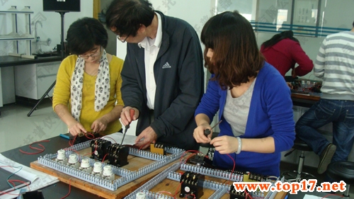 圖為:電工培訓(xùn)現(xiàn)場學(xué)員在老師的指導(dǎo)下親自動手做實驗