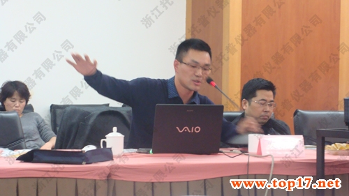 圖為:浙江托普公司朱旭華經(jīng)理向參會者演示產(chǎn)品