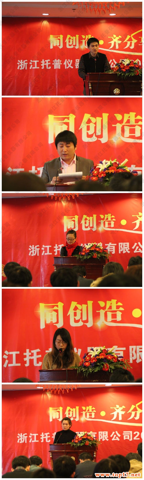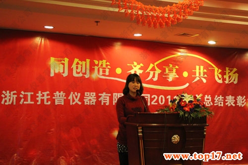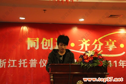 本次大會(huì)的議程共有五項(xiàng)。一、由陳渝陽(yáng)總經(jīng)理做2011年的工作總結(jié)報(bào)告,并提出2012年的工作重點(diǎn)是不斷完善現(xiàn)有產(chǎn)品的品質(zhì)控制及加強(qiáng)各個(gè)部門的團(tuán)隊(duì)建設(shè);二、是由公司各副總對(duì)2011年度工作進(jìn)行匯報(bào)總結(jié),并指出對(duì)2012的展望及規(guī)劃;三、由銷售內(nèi)貿(mào)部、外貿(mào)部、市場(chǎng)部、生產(chǎn)部、研發(fā)部、技術(shù)部、網(wǎng)絡(luò)部、財(cái)務(wù)部、人事部、行政部等各部門經(jīng)理分別上臺(tái)匯報(bào)11年各部門工作取得的成績(jī)及存在的不足,并對(duì)2012年工作進(jìn)行了合理規(guī)劃;四、由公司總經(jīng)理、各分管副總為浙江托普儀器年度優(yōu)秀新人、優(yōu)秀員工、優(yōu)秀主管、總經(jīng)理特別獎(jiǎng)等獲獎(jiǎng)人員進(jìn)行表彰;四、向先進(jìn)單位和優(yōu)秀個(gè)人頒獎(jiǎng),為托普精英們頒發(fā)證書和獎(jiǎng)金并合影留念;五、公司迎新春晚會(huì)。