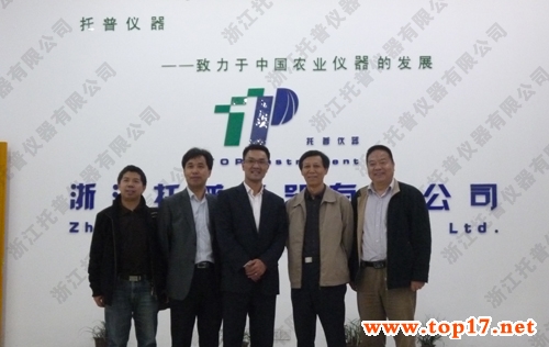 2012年4月17日,浙江省農(nóng)業(yè)廳副巡視員、人事處吳金良處長、農(nóng)業(yè)廳農(nóng)業(yè)作物局潘偉峰副局長、農(nóng)業(yè)廳辦公室周祥勝副主任、浙江省農(nóng)業(yè)科學(xué)院數(shù)字農(nóng)業(yè)研究所徐志福主任一行蒞臨托普指導(dǎo)工作,托普儀器陳渝陽總經(jīng)理和朱旭華副總經(jīng)理等熱情接待了各位領(lǐng)導(dǎo)。