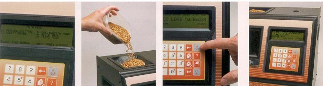 1.待測谷物倒入漏斗;        2.按進樣鍵,自動進樣 ;        3.儀器測試并顯示結果;