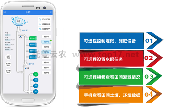 托普物聯(lián)網(wǎng)技術(shù)應(yīng)用,真正實(shí)現(xiàn)了農(nóng)業(yè)生產(chǎn)自動(dòng)化、管理智能化,通過電腦、手機(jī)實(shí)現(xiàn)對溫室大棚種植管理智能化調(diào)溫、精細(xì)化施肥,可達(dá)到提高產(chǎn)量、改善品質(zhì)、節(jié)省人力、降低人工誤差、提高經(jīng)濟(jì)效益的目的,實(shí)現(xiàn)溫室種植的高效和精準(zhǔn)化管理。