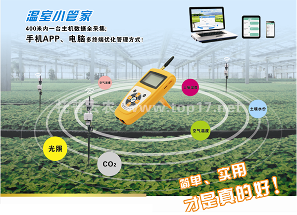 溫室小管家又叫農(nóng)業(yè)環(huán)境在線監(jiān)測儀可接土壤、氣象、作物本體等幾十種傳感器,采集數(shù)據(jù)可本機(jī)查看,亦可上傳至智慧云平臺和手機(jī)APP,方便隨時(shí)查看;帶語音報(bào)警和數(shù)據(jù)播報(bào)功能,可播報(bào)超限環(huán)境信息;可設(shè)置自動(dòng)采集,實(shí)現(xiàn)無人值守不間斷數(shù)據(jù)采集;最多可存8000組數(shù)據(jù),亦可配內(nèi)存卡不限量儲存。小巧便攜,是設(shè)施農(nóng)業(yè)中實(shí)用、高性價(jià)比的溫室小管家。