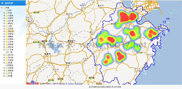 平臺(tái)將災(zāi)情按嚴(yán)重程度分為不同顏色,并在省級(jí)行政圖中以點(diǎn)的形式表示,只要一打開平臺(tái)的行政區(qū)域圖,即可直觀顯示省內(nèi)各區(qū)域的墑情情況如何。